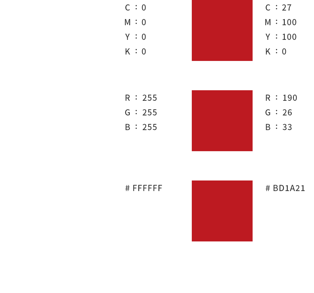 - ブランドカラーは色彩的な象徴であり、使用にあたっては、形式ごとに定められた規定を遵守してください。更には、再現された色の補正によって、色再現の誤差を最小限にとどめてください。